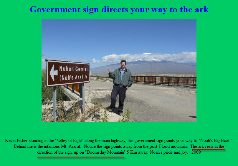 The ark rests in the direction of the sign, up on "Doomsday Mountain"