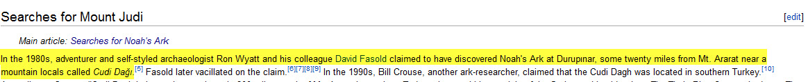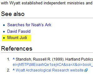 و نجد في نفس الصفحة بالأسفل أن من ضمن المواضيع ذات الصلة بصفحة الباحث رون وايت هي صفحة جبل الجودي