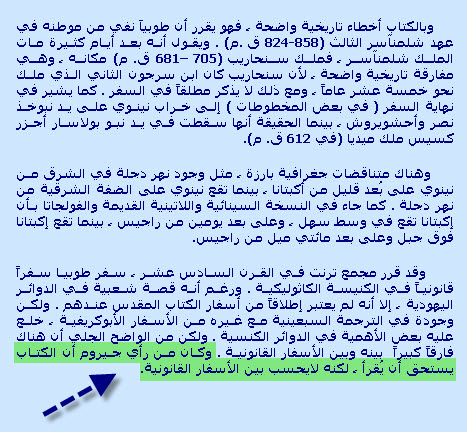 3- لم نتطرق الى التحريفات التى تخص التراجم ... فحدوث تحريفات فى الترجمة لا علاقة له بأصل الكتاب ...فالمهم الا يحدث تحريف فى الأصل نفسه .