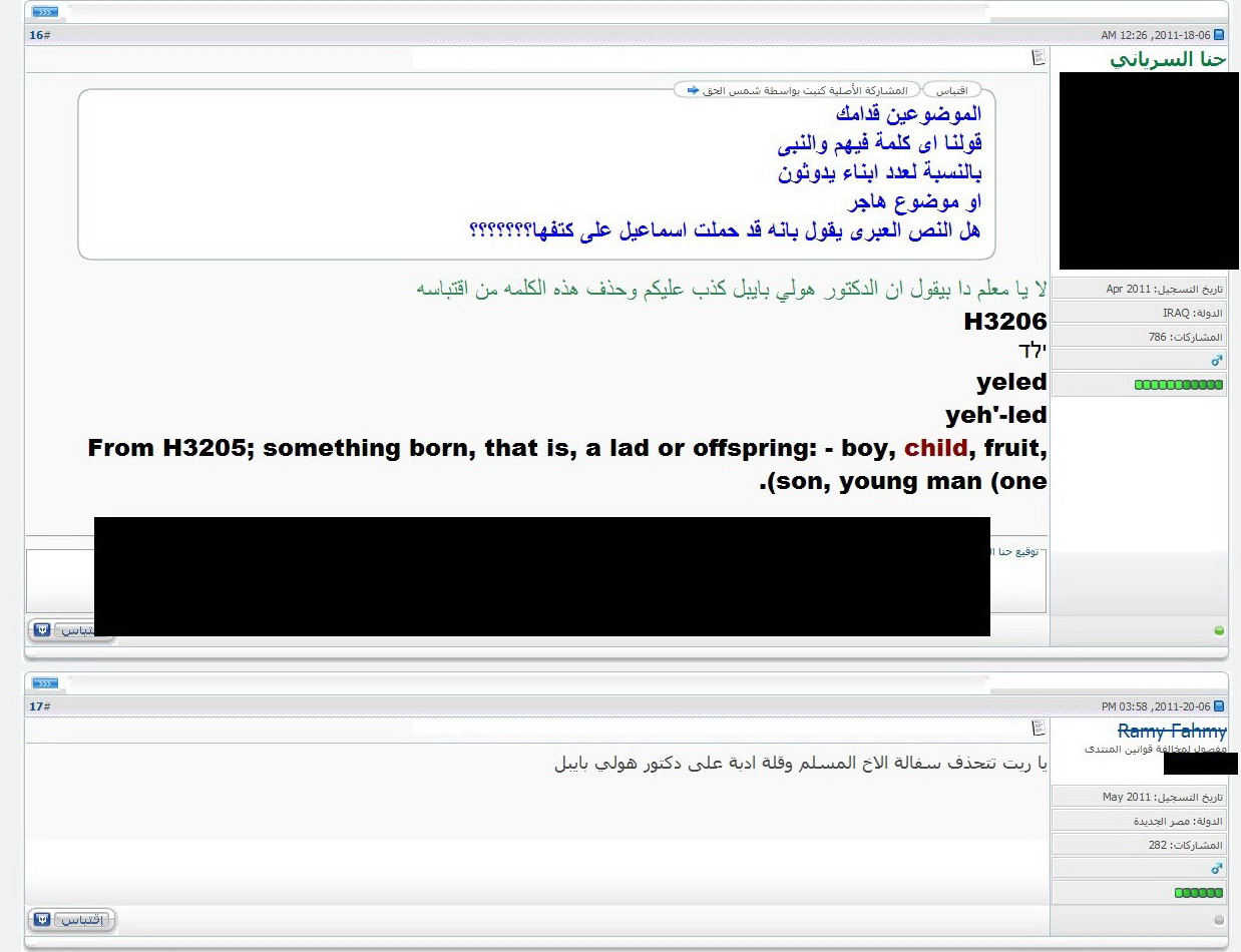 أولهما : يا مسلم يا كذاب يا من شتمت هولي بايبل وقولت له يا مدلس مما ترتب على سماع هذه الكلمة الشنيعة انفجار احاسيسي الرقيقة واصابتي بنوبة اكتئاب نفسي حاد ... يا وحش