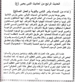 يحيى بن زكريا عليه السلام يبشر بقدوم (محمد العربي) عليه الصلاة والسلام وهو من أحفاد إسماعيل في الحديث الرابع: